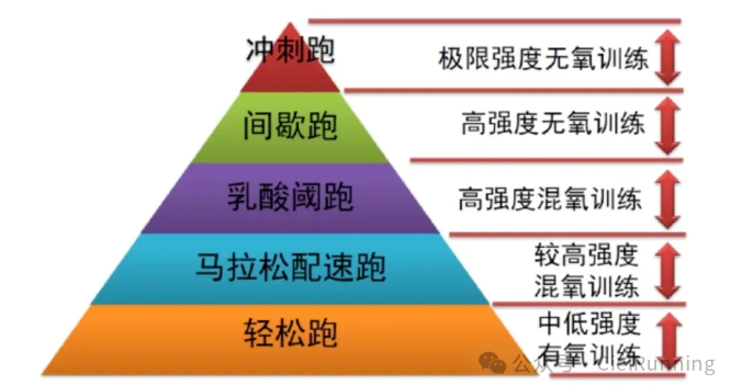 速度训练:基础训练中应包含速度训练,如节奏跑和法特莱克训练,以提高腿部速度和神经肌肉健康。在我们日常跑步训练中,80%的跑步保持低强度的有氧,用来打基础,另外的20%去进行高强度训练,用来提升速度。